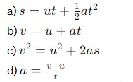 KINEMATICS MCQS PART 5 1. An object is moving with uniform circular motion. Which of the following statements is true Its velocity is constant Its speed is constant Its acceleration is directed along the radius of the circle Its acceleration is directed tangentially to the circle 2. A car accelerates uniformly from rest at 2 m/s^2. What is its velocity after 5 s 10m/s 15m/s 2m/s 5m/s 3. Which of the following equations represents the relationship between velocity, initial velocity, acceleration, and displacement B D C A 4. An object is moving with a constant acceleration. What can be said about its velocity-time graph It is a straight line parallel to the time axis It is a straight line sloping upwards It is a horizontal line It is a curve 5. Which of the following equations represents the relationship between velocity, acceleration, and time A C B D 6. Which of the following quantities can be used to describe the motion of an object All of the them Acceleration Velocity Speed 7. An object moves with a constant acceleration of 4 m/s^2. What is its velocity after 10 s, starting from rest 40m/s 20m/s 60m/s 80m/s 8. An object is moving with a velocity of 5 m/s5m/s east. After 10 s, its velocity becomes 15 m/s east. What is its acceleration 2m/s 3m/s 4m/s 1m/s 9. Which of the following statements is true about the acceleration of an object in free fall It is increasing It is decreasing It is constant It is zero 10. A stone is thrown vertically upwards with an initial velocity of 20 m/s. What is the maximum height reached by the stone? (Take acceleration due to gravity as 9.8 m/s2) 60m 20m 40m 80m Loading … Pages: 1 2 3 4 5 6
