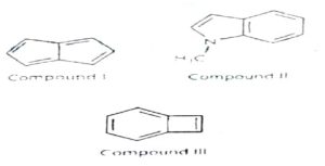 SINDH MDCAT 2015 PAPER MDCAT 2015 PART 5 ( CHEMISTRY ) 1. In which of the following compound carbon uses sp3 hybrid orbitals for bond formation? Note: This question was cancelled CH2=C=O (CH)3, COH C2H4 C2H6 2. The table shown below gives the bond dissociation energies of single covalent bonds of carbon atom with elements A, B, C and D. Which of the following is the smallest atom? B A D C 3. The IUPAC name for the structure below ends with what suffix? -ide -yne -oic acid -ol 4. What is the major product of nitration reaction below? D C A B 5. Which of the molecules shown below are aromatic I and III only I,II and III II only I only 6. What are the major products of the reaction shown below Bromobenzene and propanol Bromobenzene and propane Phenol and bromopropane Benzene and propane 7. Commercial hydrogen is obtained from: Coal gas Oil gas Producer gas Marsh gas 8. The ionization of hydrogen atom gives: Hydronium ion Hydride ion Proton Hydroxyl ion 9. Which is most basic in character? KOH NaOH RbOH LiOH 10. Oxygen does not react with: S P Na Cl Loading … Pages: 1 2 3 4 5 6 7 8 9