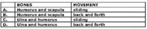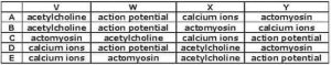 SINDH MDCAT 2017 PAPER MDCAT 2017 ( PART 9 ) 1. The following sequence of events occurs at the neuromuscular junction. Nerve impulse→ Release of V → End plate potential → W produced in muscle fiber → X released from sarcoplasm reticulum → Formation of Y → Muscle contraction. Which on of the following shows the correct sequence from V-Y ? E C A D B 2. Which group of organisms has the following features? I. three pairs of jointed legs II. three-part segmented body III. one pair of antennae Myriapods Arachnids Crustaceans Insects 3. The table shows some characteristics of four different vertebrates. Which vertebrate is a reptile ? A B D C 4. The diagram show some organs of the digestive system. Where is amylase present ? 1, 4 and 5 1, 2 and 3 3, 5 and 4 2, 6 and 4 5. Which bone meet at the elbow joint and what kind of movement do they allow ? C A D B 6. The below diagram represent the process of Hydrolysis Neutralization Condensation Metabolism 7. Which of the following is correctly matched ? Ah, Bi, Df, Cg, Ej Af, Bg, CJ, Di, Eh Ah, Bf, Dg, Ci, Ej Aj, Bi, Ch, Dg, Ef 8. Pyruvic acid Is the end product of: Glycolysis Electron transport system Krebs cycle Oxidation 9. Humoral Immunity is carried by a special group of cells called; Killer cells Null cell Helper cells B-cells 10. Identify the correctly matched pair relating to a term and Its meaning/function/Example; Biosphere … where life exist Lithosphere … water, air and soil on the surface of earth Nitrogen cycle … Rhizopus Denitrifying bacteria … change protein to ammonia Loading … Pages: 1 2 3 4 5 6 7 8 9 10
